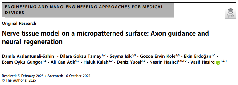 Arslantunali-Sahin, D., Tamay, D.G., Isik, S. et al. (2025). Nerve tissue model on a micropatterned surface: Axon guidance and neural regeneration. J Mater Sci: Mater Med 37, 18.